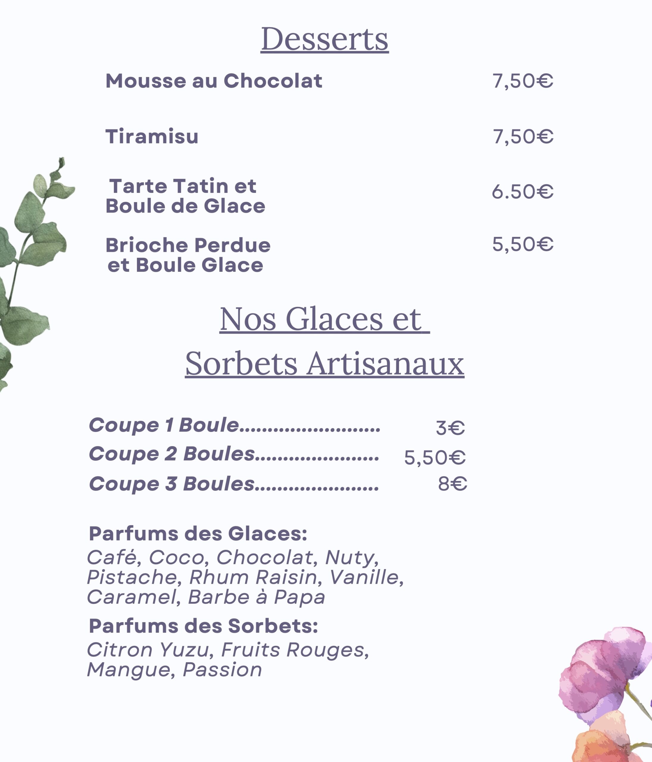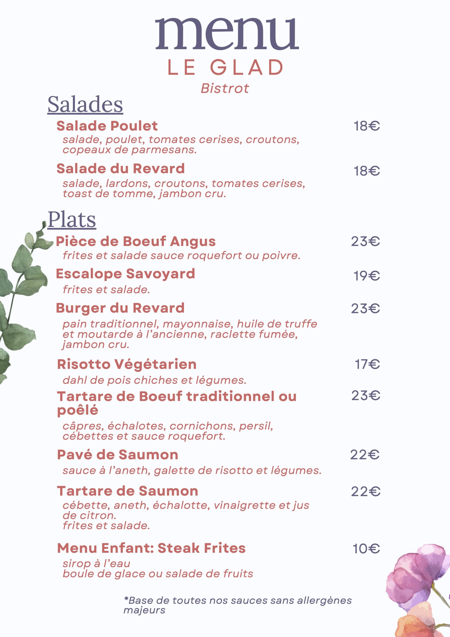 Plat du jour à 16.50 euros Entrée plat 19.00 euros Plat dessert 19.00 euros Entrée plat dessert 22.00 euros
